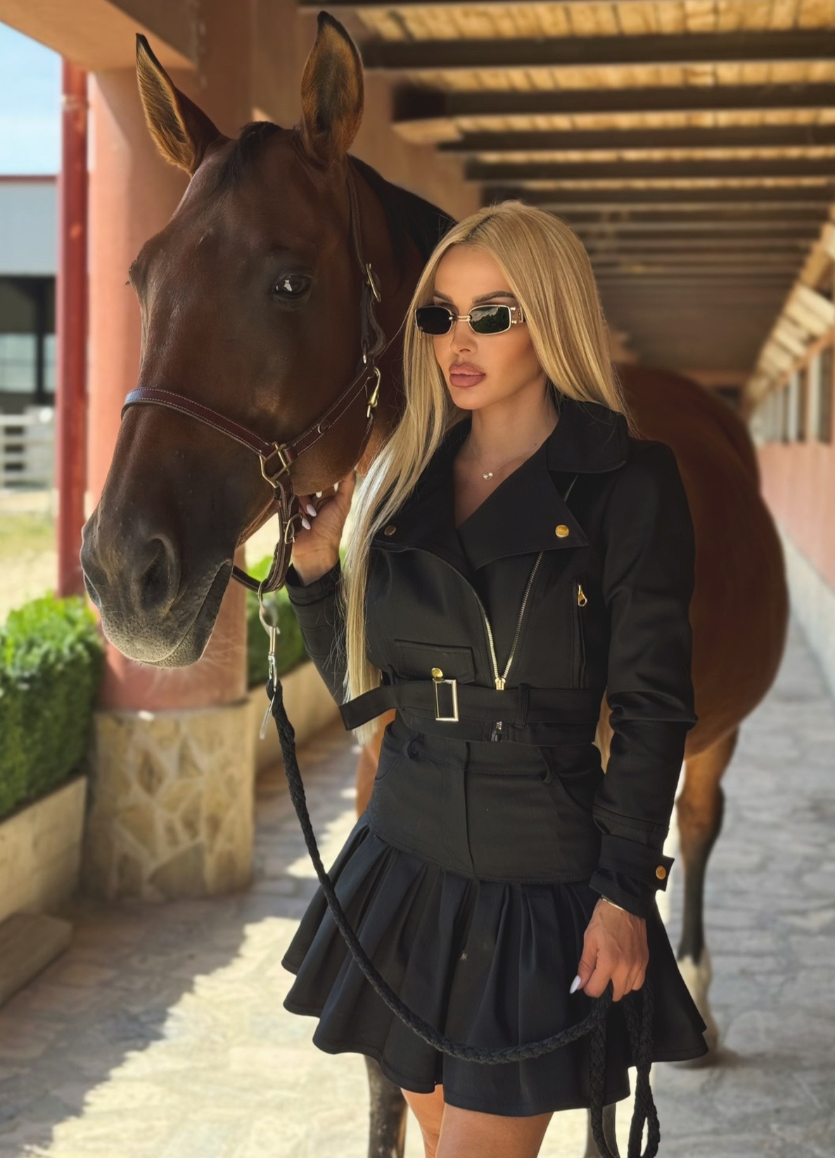 ✨Пола с иновативна кройка с вталена горна част разкрояване от ханша надолу , изработена от еластичен деним